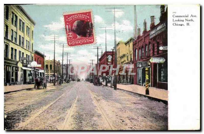 Postcard Old Chicago Commercial Ave Looking North Chicago