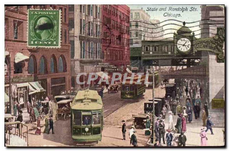 Postcard Old Chicago State and Randolph Chicago Tramway