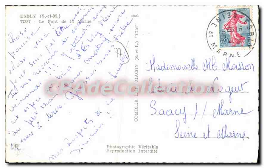 Postcard Old Esbly S and M The Marne Bridge