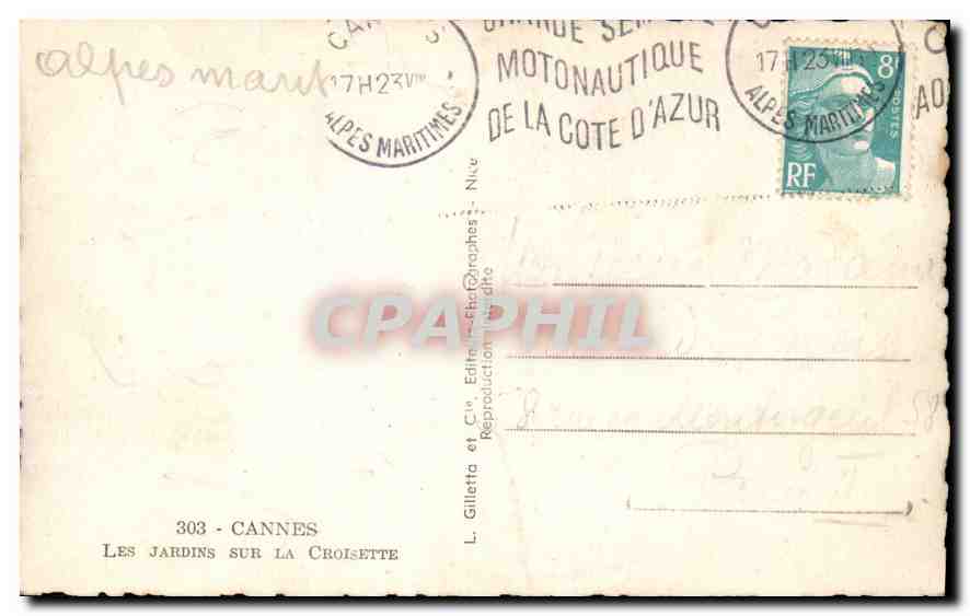 Postcard Old Gardens Cannes on the Croisette