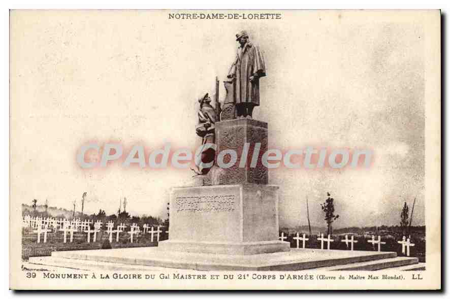 Postcard Old Glory Monument Gal Maistre and 21me Corps Weapons implement the ...