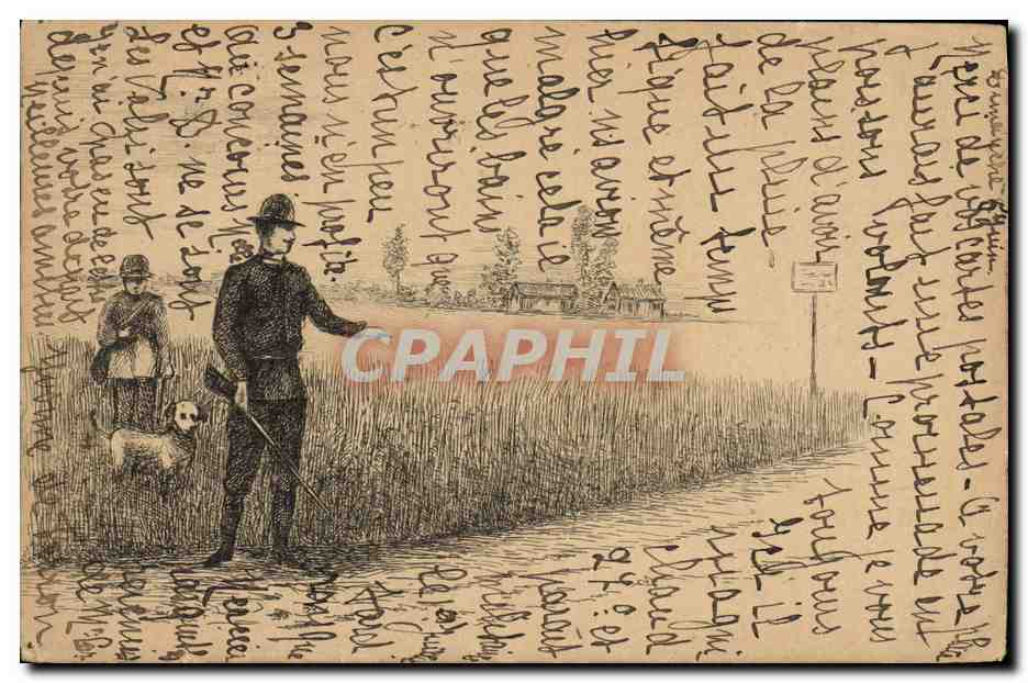 Postcard Old Hunting Hunter Hunters Dog