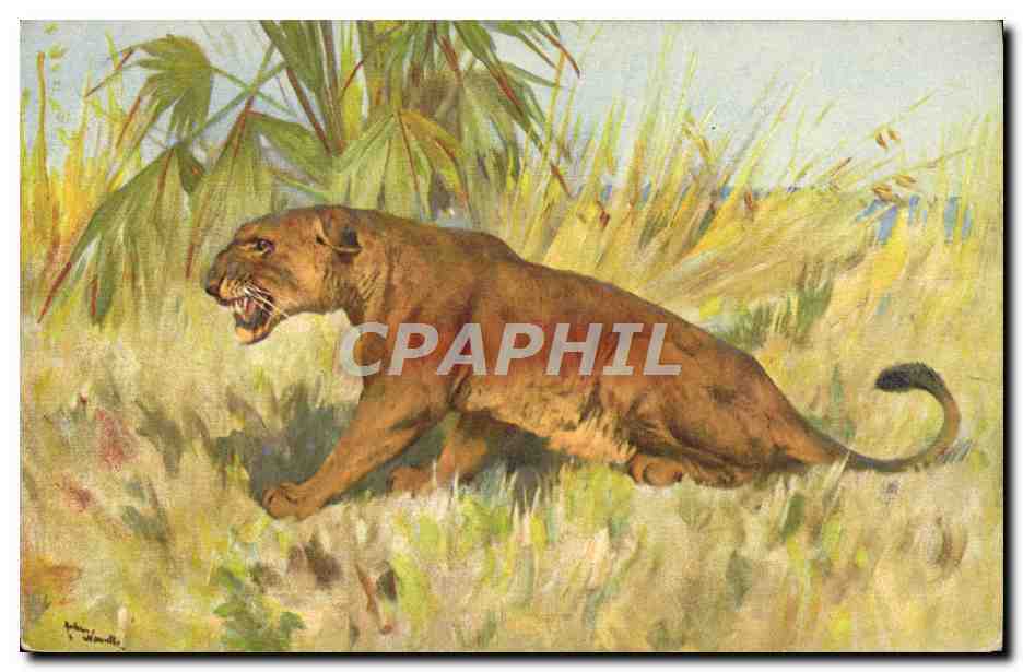 Postcard Old Lion Lioness