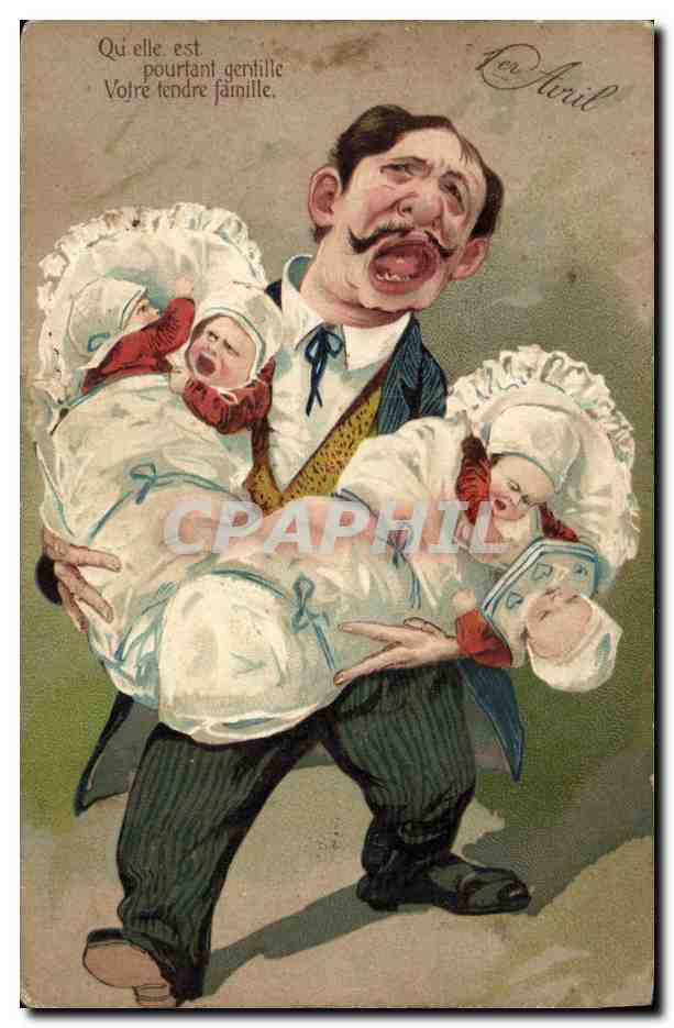 Postcard Old Man Fantasy Children Babies