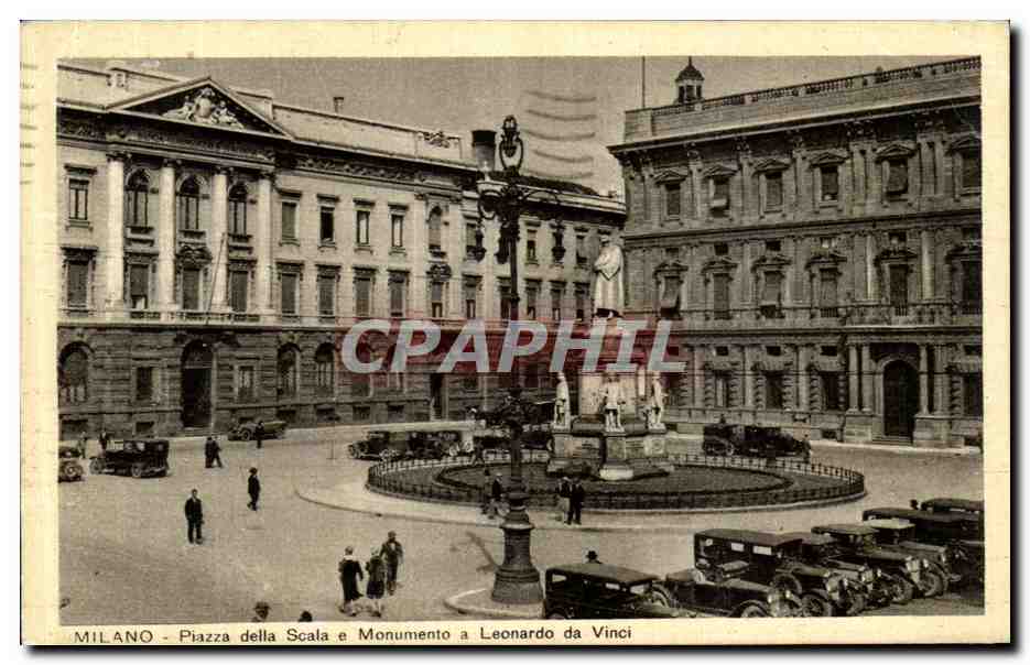 Postcard Old Milan Piazza della Scala e Monumento a Leonardo da Vinci