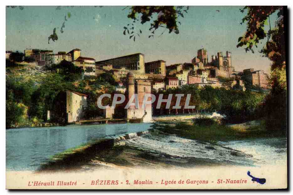 Postcard Old Mill Beziers Lycee de Garcons
