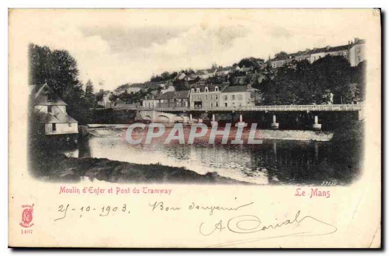 Postcard Old Mill Bridge Hell and Tramway Le Mans