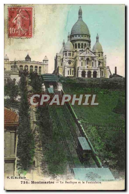Postcard Old Montmartre Basilica and the Funicular