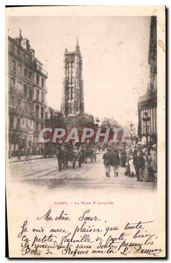 Postcard Old Paris St Jacques Tower
