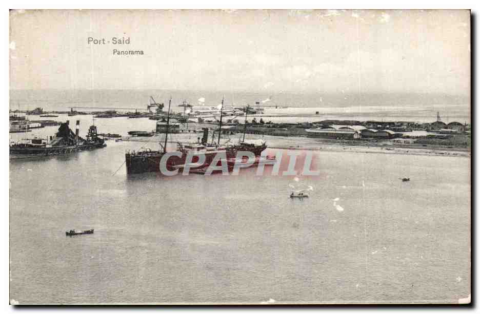 Postcard Old Port Said Egypt Panorama Boat
