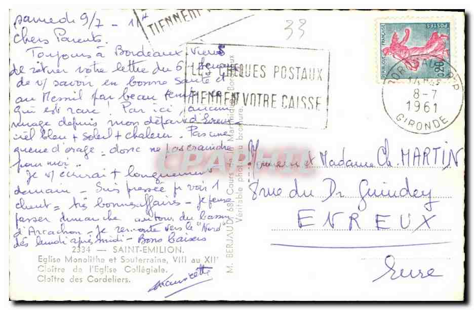 Postcard Old Saint Emilion Monolithic Church and Underground Cloitre da l & #...