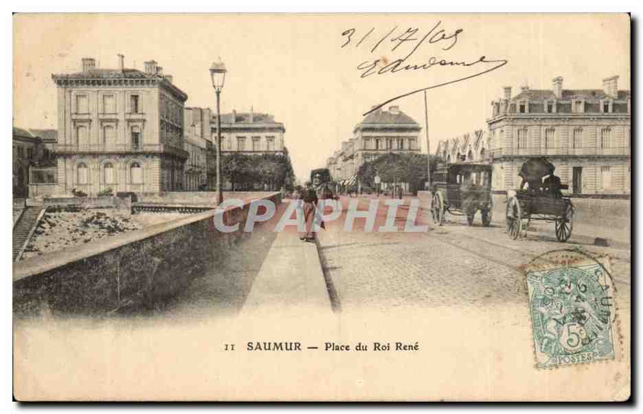 Postcard Old Saumur Rene King Square