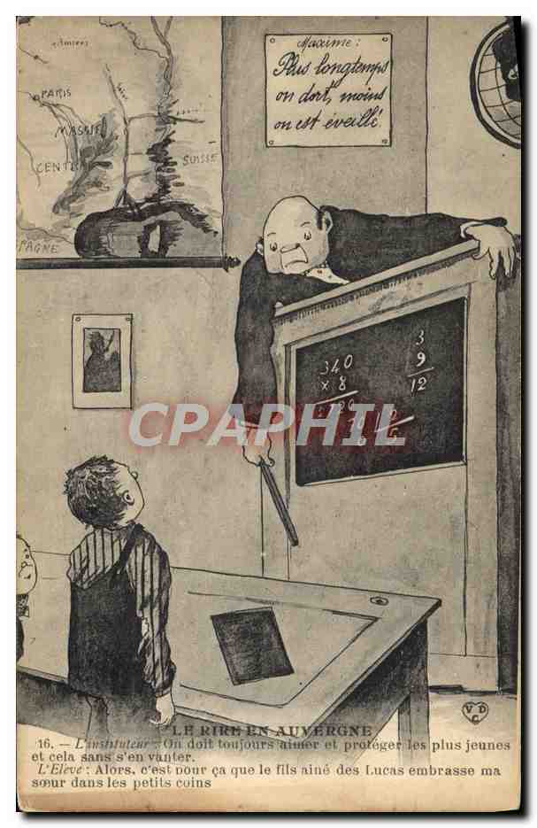 Postcard Old School Laughter in Auvergne