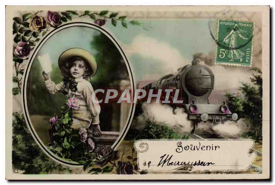 Postcard Old Train Children