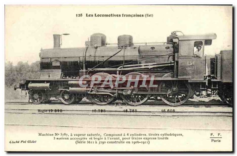 Postcard Old Train Locomotive 3787 Steam Machine saturated