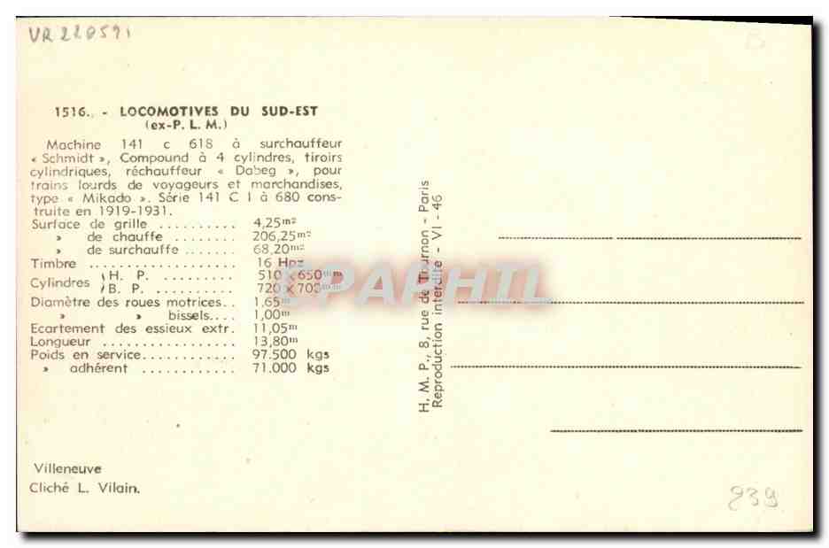 Postcard Old Train Locomotive machine 141 C 618