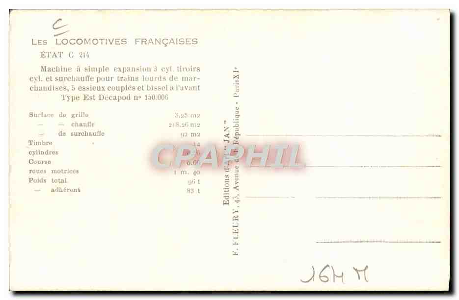 Postcard Old Train Locomotive Machine State C 214