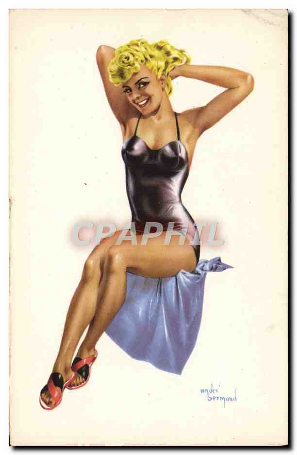 Postcard Old Woman Pin Up Andre Bernard