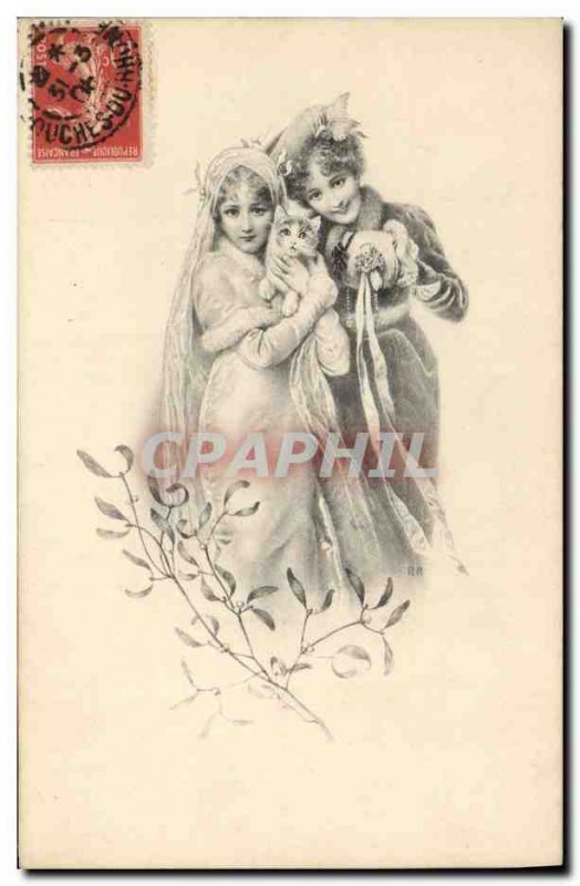 Postcard Old Women Fancy Cat Kitten