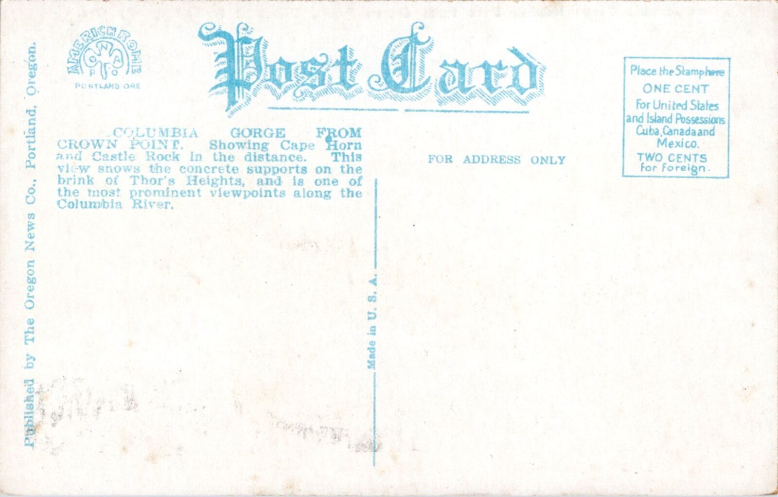 Postcard OR Columbia Gorge looking east from Crown Point