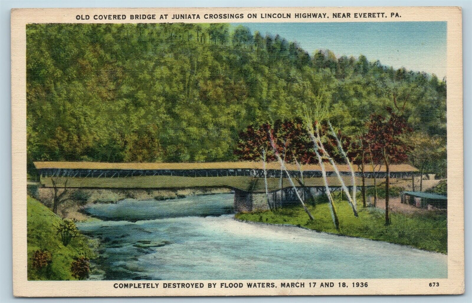 Postcard PA Everett Covered Bridge Juniata River Lincoln Highway Destroyed U16 - see pictures for condition and details, use the zoom and please ask questions