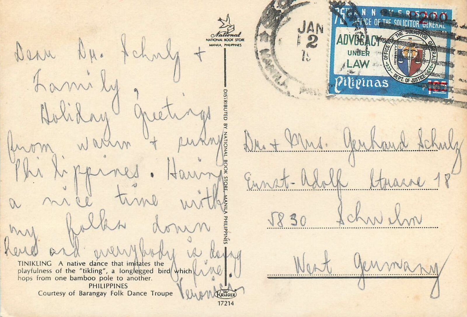 Postcard Philippines ethnic types and scenes Tinikling native dance
