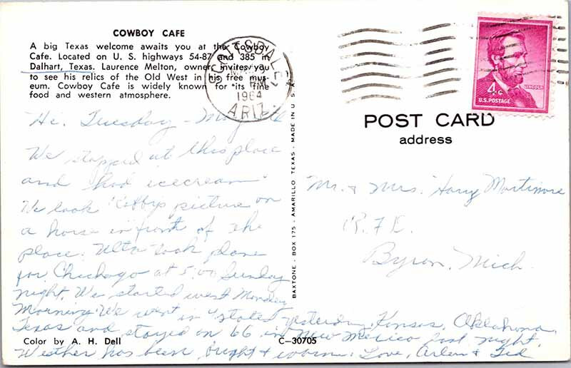 Postcard RESTAURANT SCENE Dalhart Texas TX AL9357