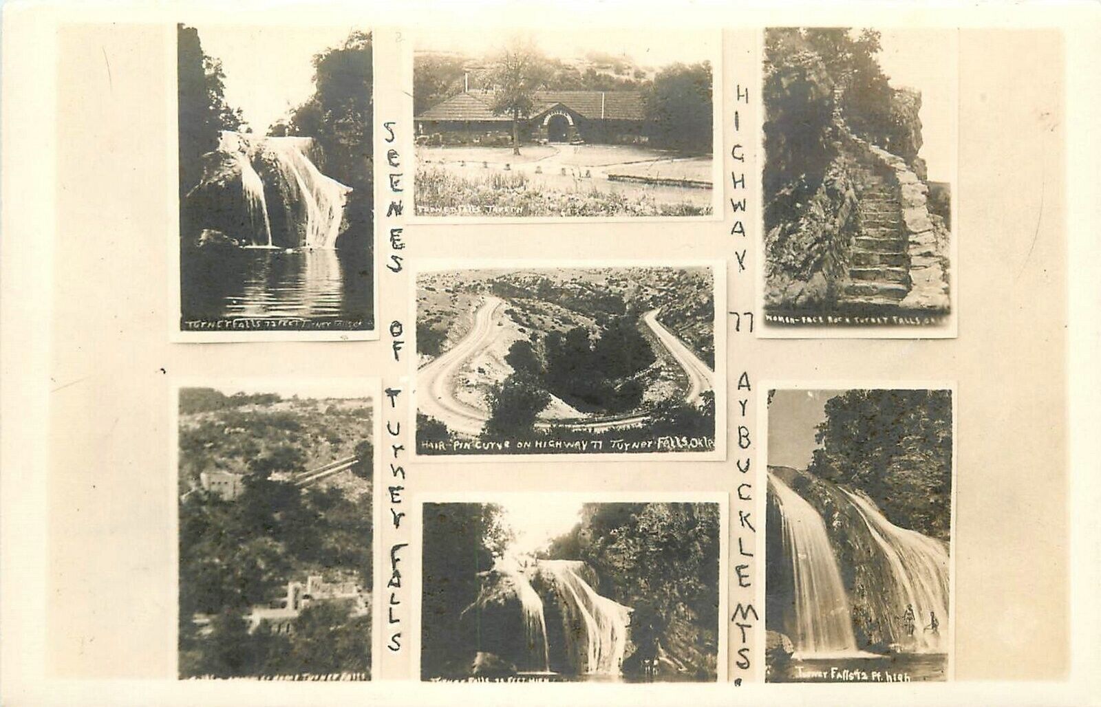 Postcard RPPC 1940s Oklahoma Turner Falls multi view 23-11302