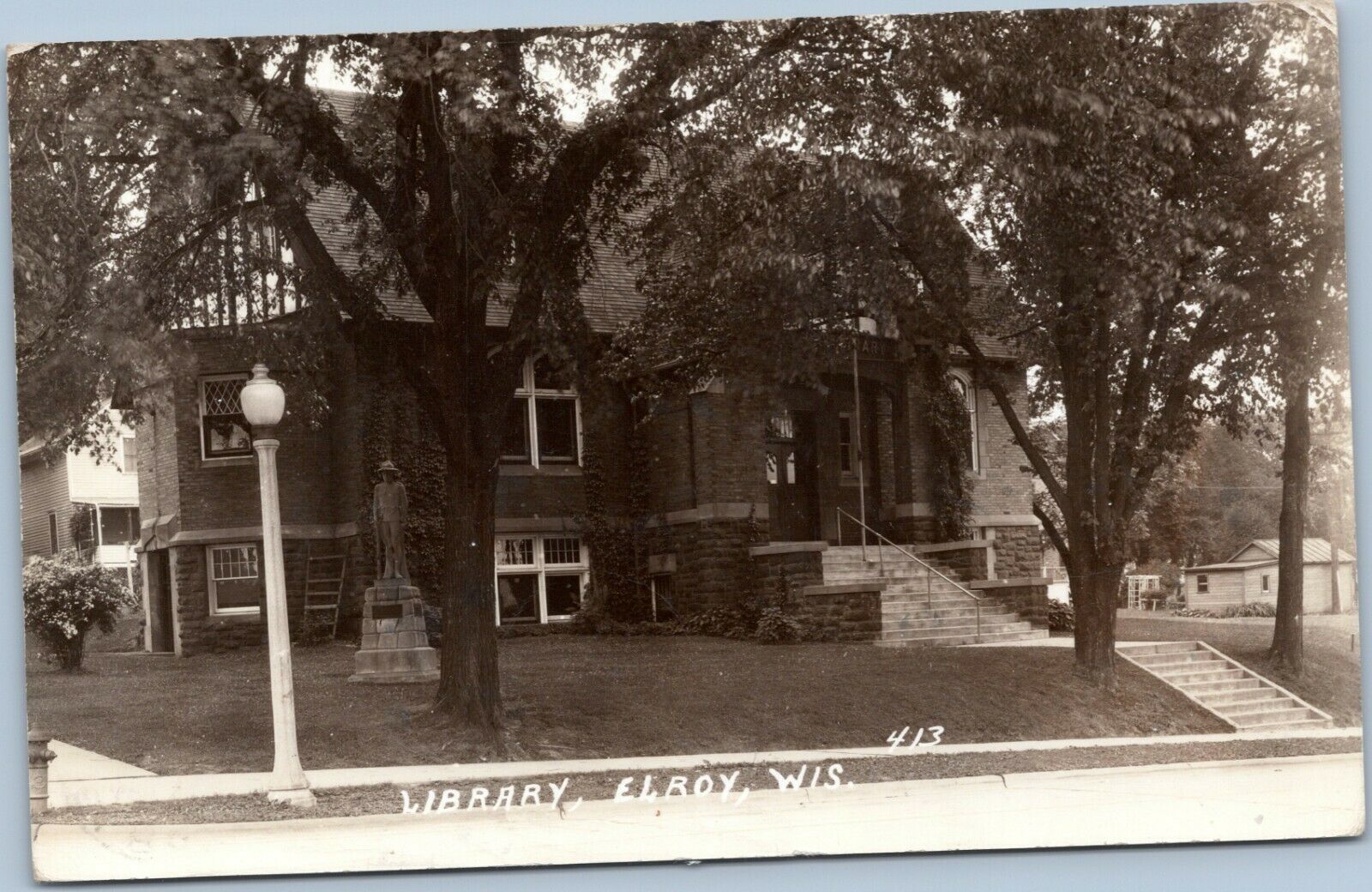 postcard rppc Elroy, Wisconsin - Public LIbrary, Carnegie library