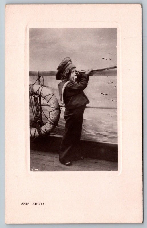 Postcard Sailing Ship - Ships Ahoy - Abington Mass - Morse Code Message