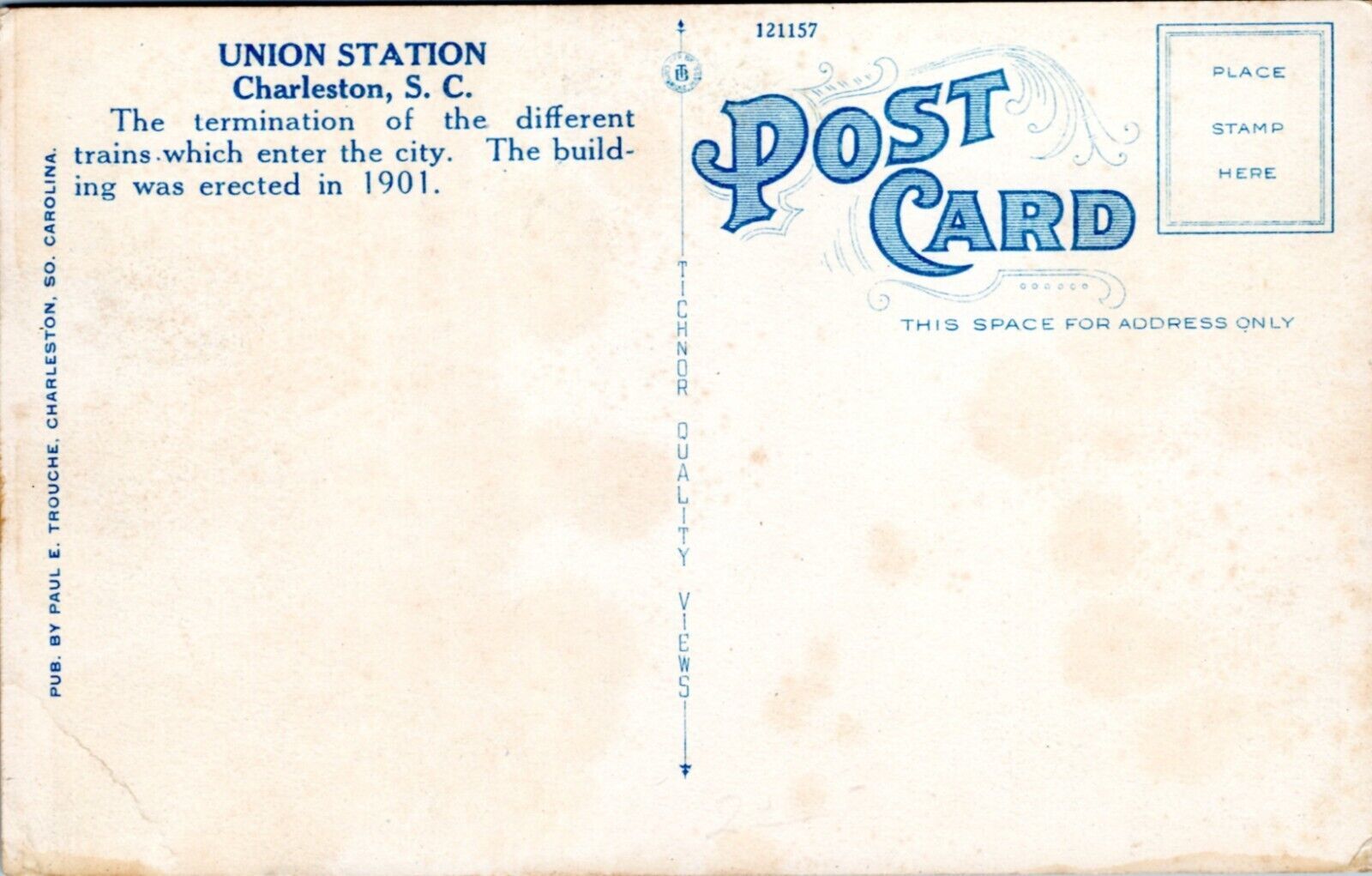 Postcard SC Charleston - Union Station