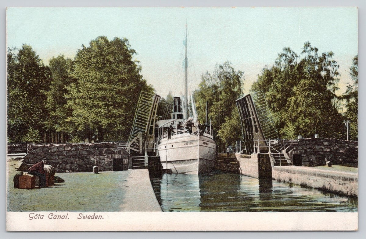 Postcard Ship Navigating The Göta Canal 1900s View
