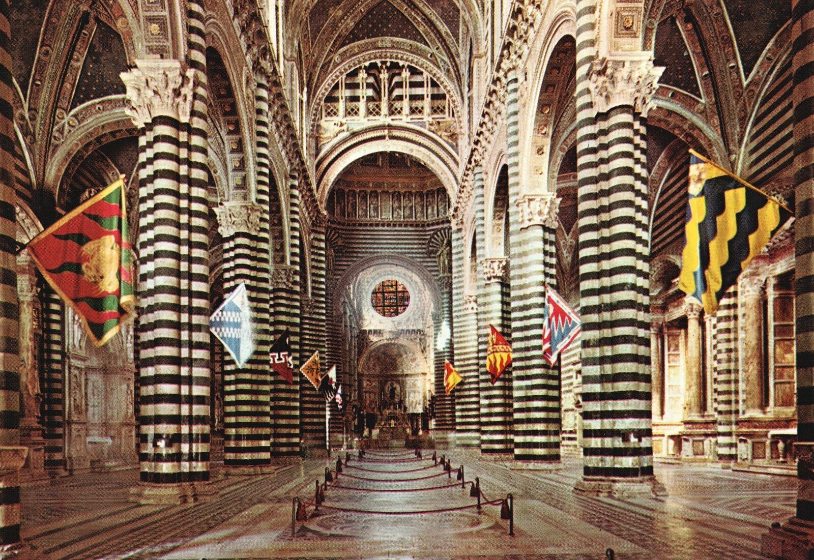 Postcard Siena Duomo Cathedral Inside The Districts Flags Italy