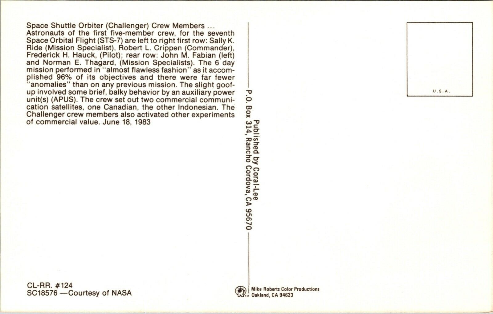 Postcard Space Shuttle Orbiter Challenger Crew Members Astronauts4047