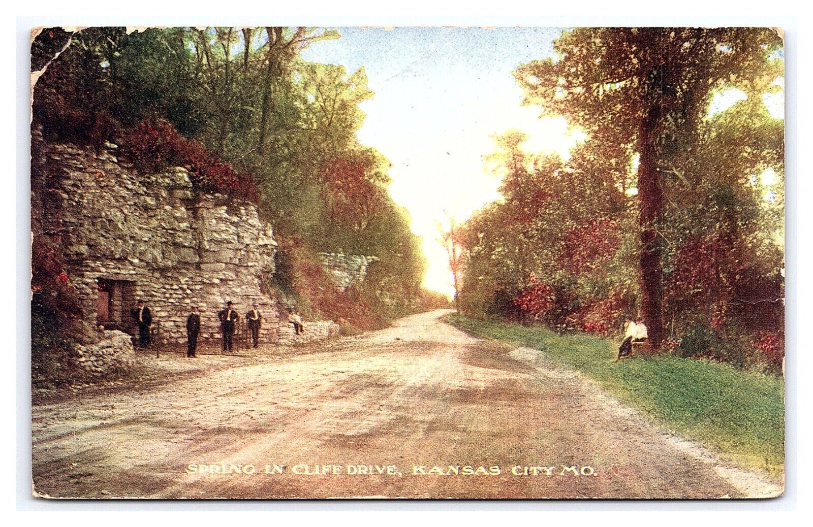 Condition: Mailed, Showing Wear From Handling. Writing On The Back. Reasonable Offers Always Considered. Postcard Spring In Cliff Drive Kansas City MO. Missouri c1909 Postmark