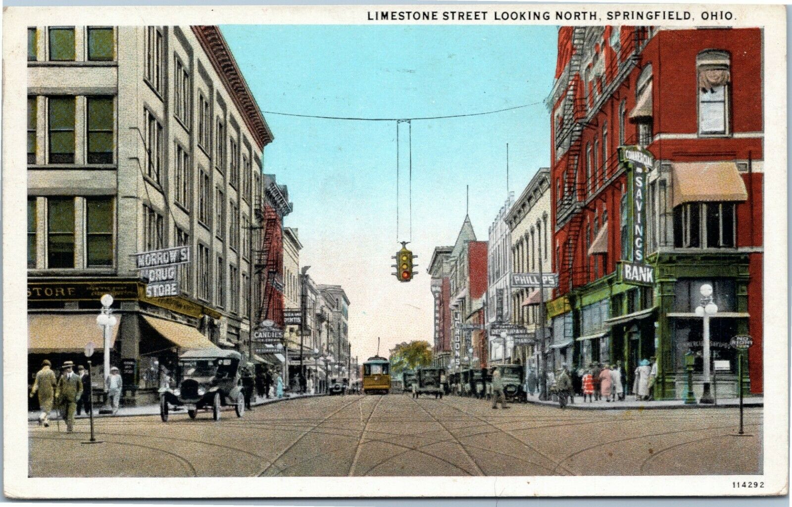 postcard Springfield, Ohio - Limestone Street Looking North 1929