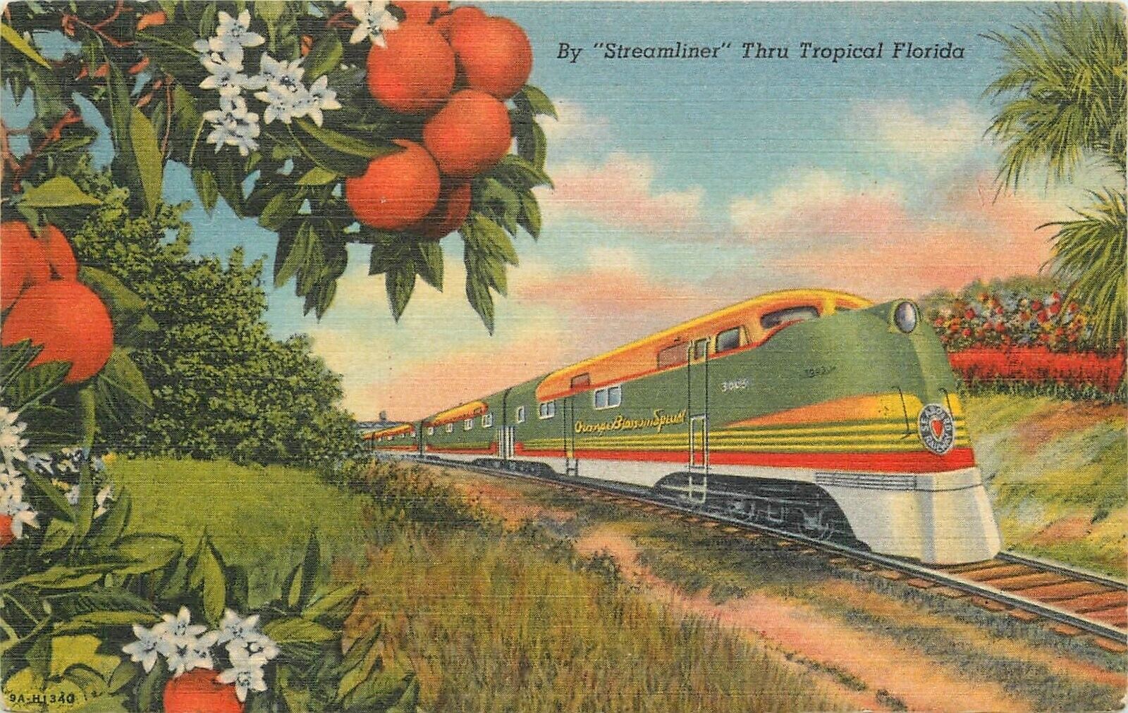 Postcard Streamliner railroad train Florida Oranges Teich linen 23-7933