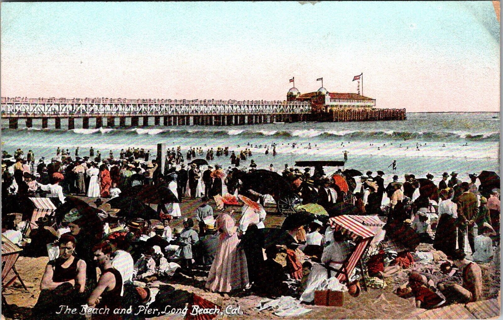 This vintage postcard features a stunning view of The Beach & Pier in Long Beach, California. The postcard is a printed lithograph from the era of divided back postcards, c. 1907-1915. The city/region of the postcar ... Read More
