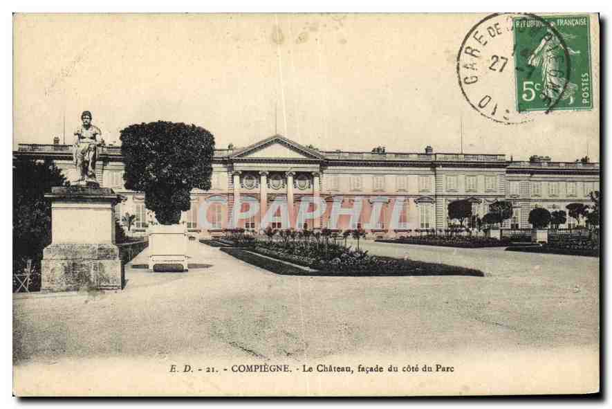 Postcard The Old Compiegne Chateau frontage odds Park