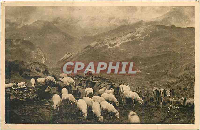 Postcard The Old Pasture Pyrenees to Col d'Aubisque Cows Sheep