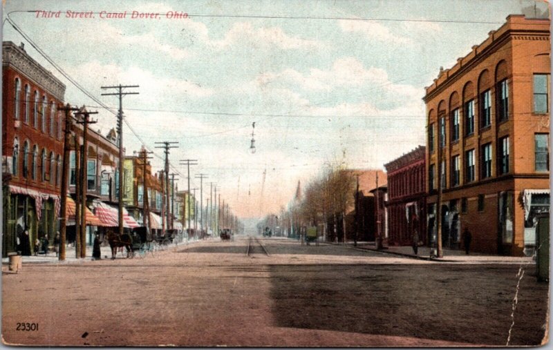Postcard Third Street in Canal Dover, Ohio