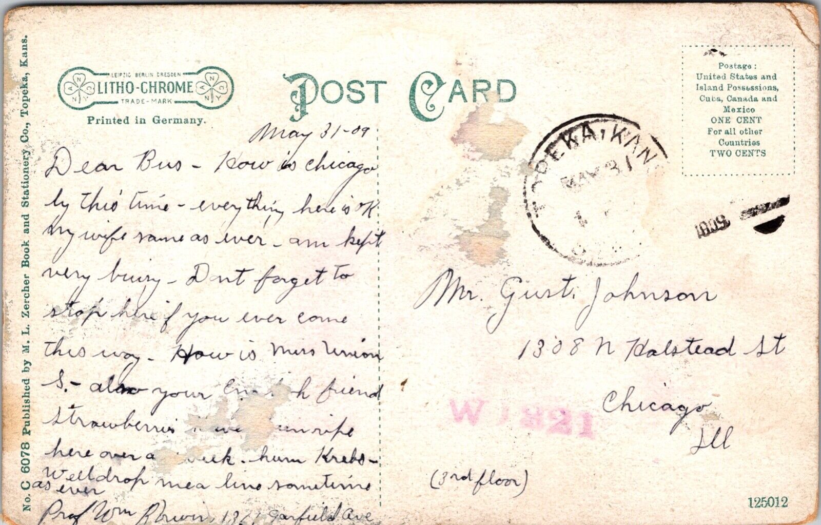 Postcard Throop Hotel in Topeka, Kansas