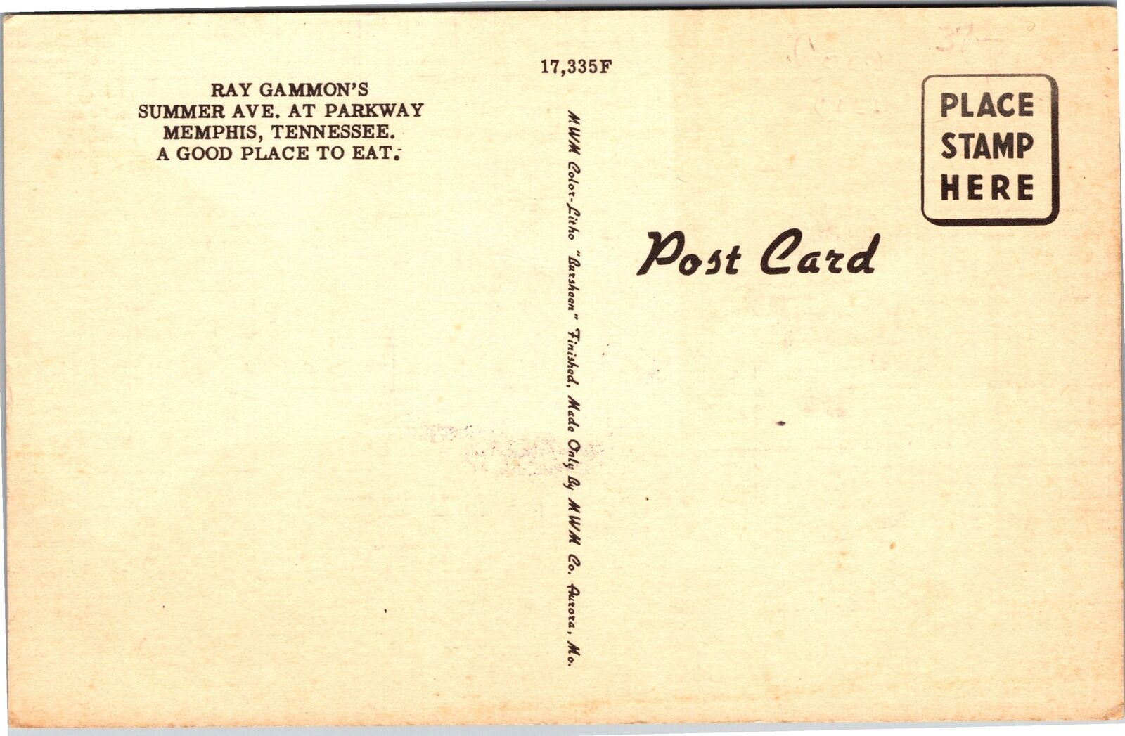 Postcard TN Memphis restaurant Ray Gammon's Coca-Cola