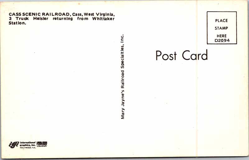 Postcard TRAIN SCENE Cass West Virginia WV AM8182