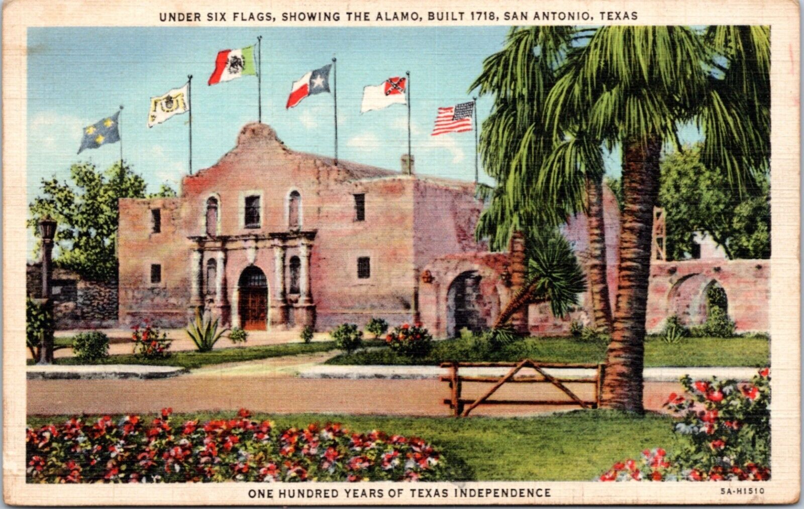 Postcard TX San Antonio - The Alamo under Six Flags