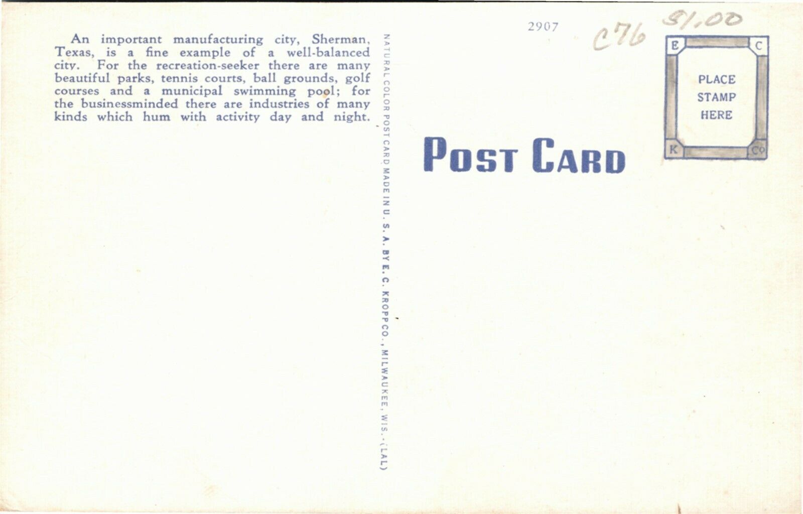 Postcard TX Sherman Downtown Business District Aerial View LINEN 1940s S56 - Powered by SixBit's eCommerce Solution