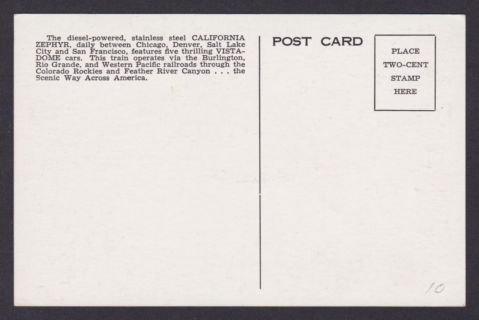 Postcard, United States, California Zephyr Train