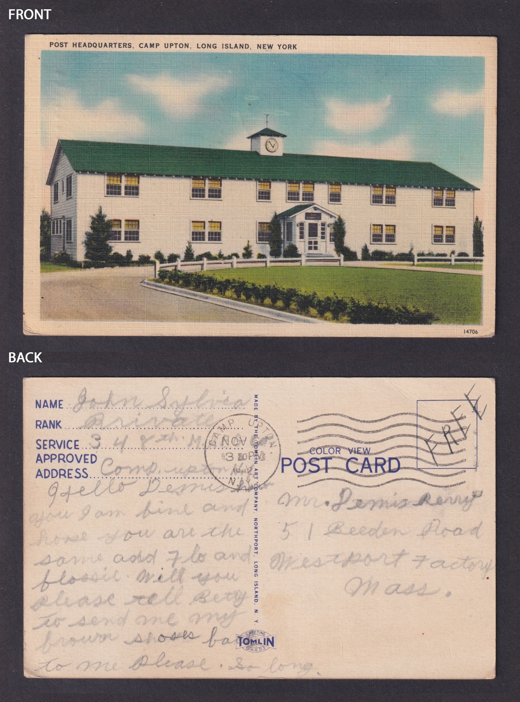 Postcard, United States, Camp Upton NY, Post HeadquartersSeller Information