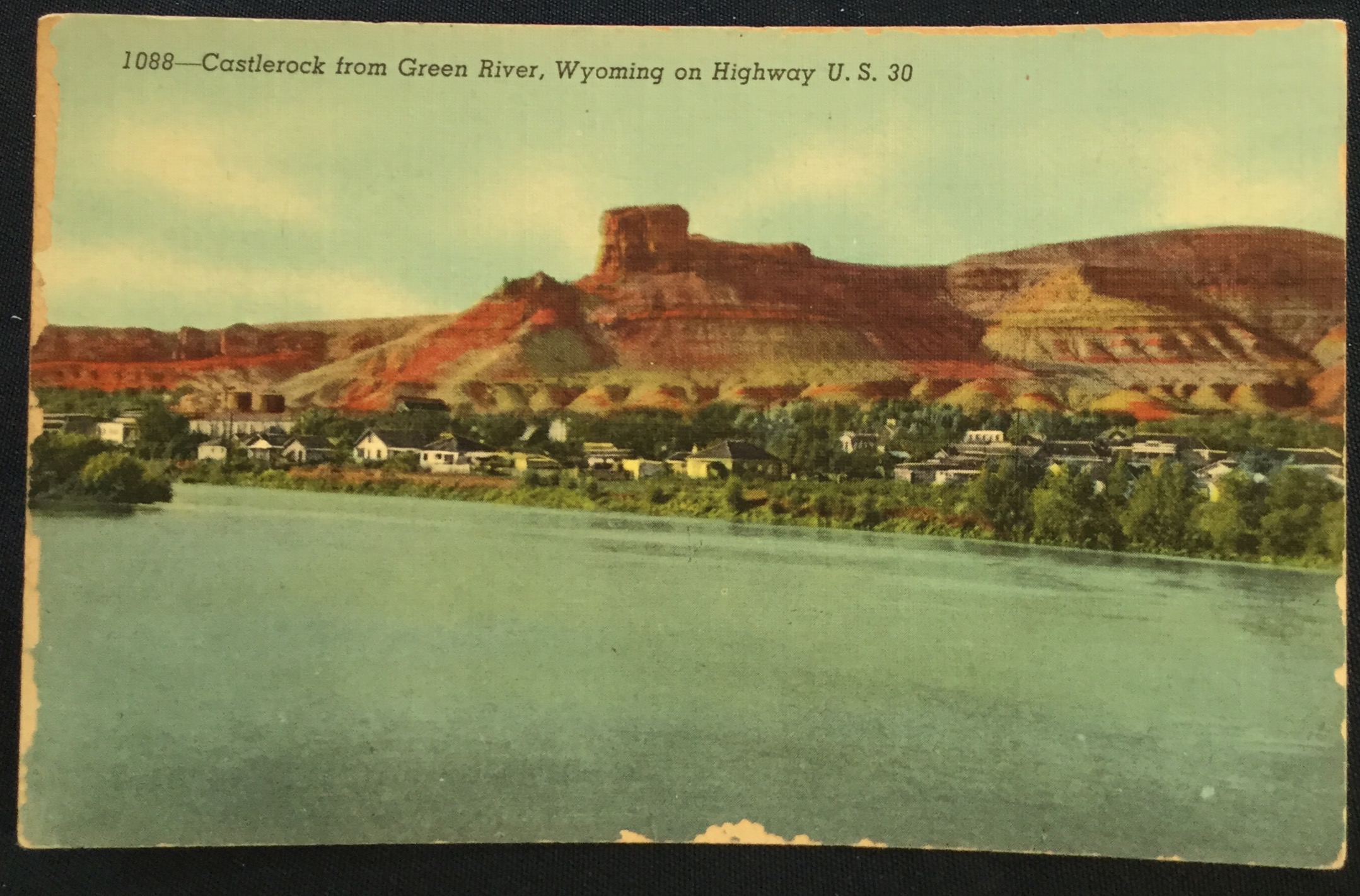 POSTCARD, Unused. 1088-Castle rock from Green River, Wyoming, Green River, Wyoming. ANY SHADOWS ARE DUE TO MY PHOTOGRAPHIC EXPERTISE.See Photo for Condition.