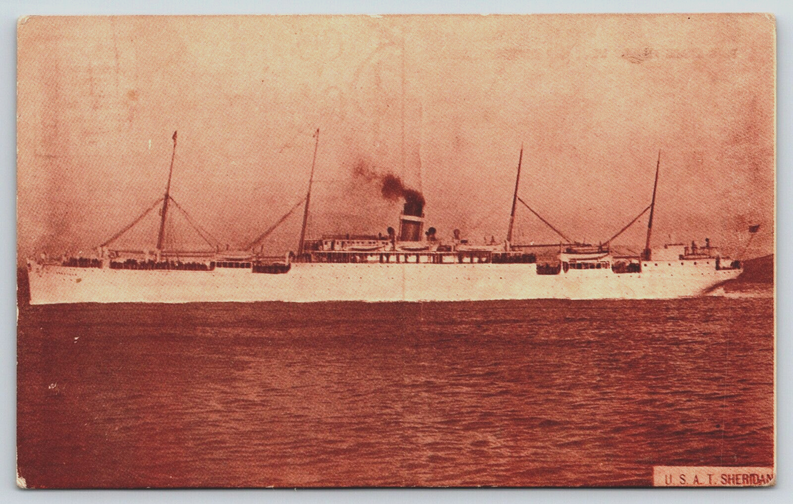 Postcard U.S.A.T. Troop Transport Ship - Sheridan - c1918